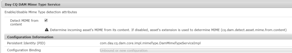 To fix this, we need to enable “Day CQ DAM Mime Type Service“.