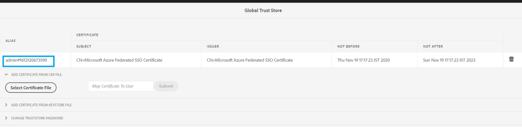 • Click “Create Trust store” if one doesn’t exist. Provide a password that matches the password policy set on your AEM.