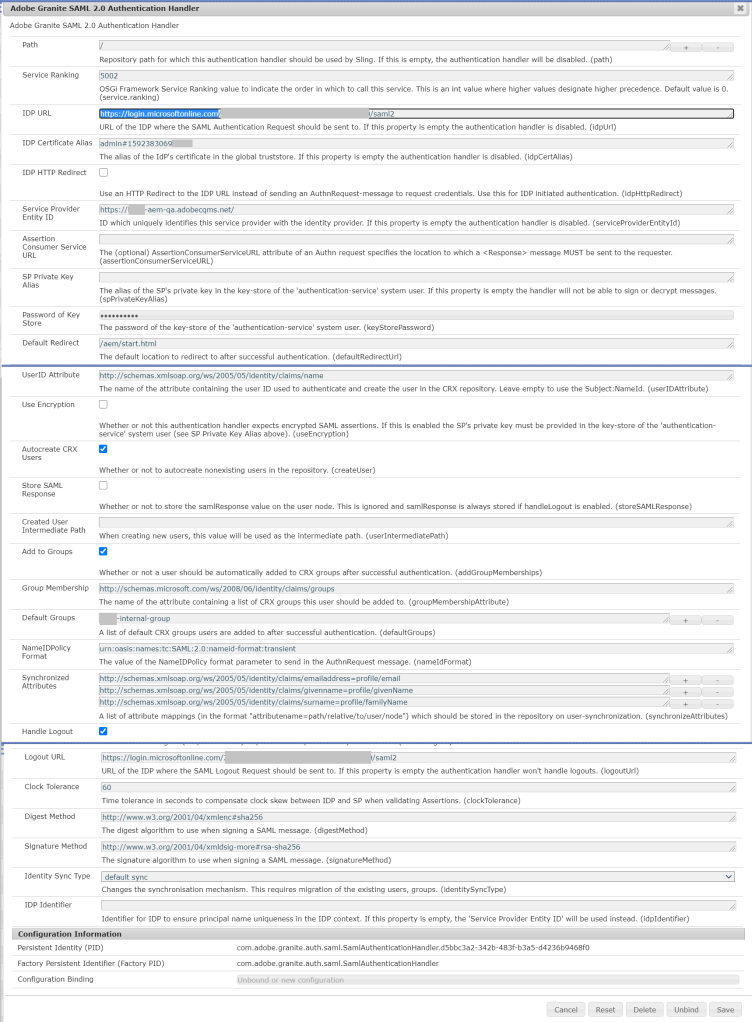 • Click to add a new config for “Adobe Granite SAML 2.0 Authentication Handler”