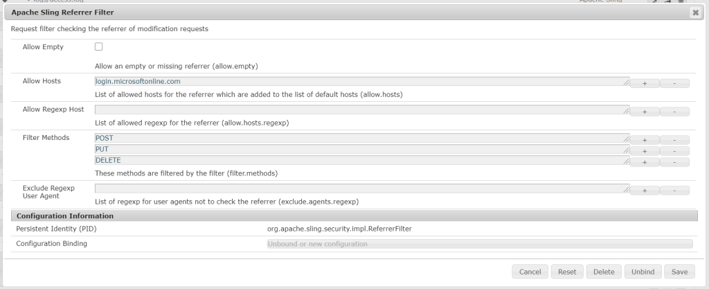 Step-4: Configure Apache Sling Referrer Filter for IDP