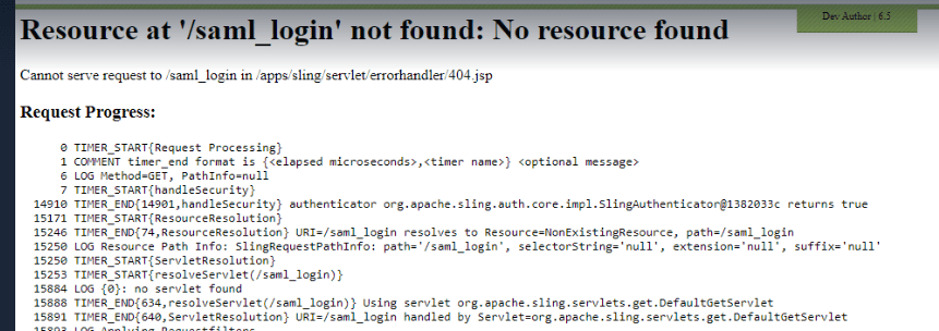 Resolution: The “saml_login” Servlet only handles POST requests. Hence, if you noticing intermittent GET requests, resulting in resource not found error, then deny GET request to “/saml_login” on Author.
